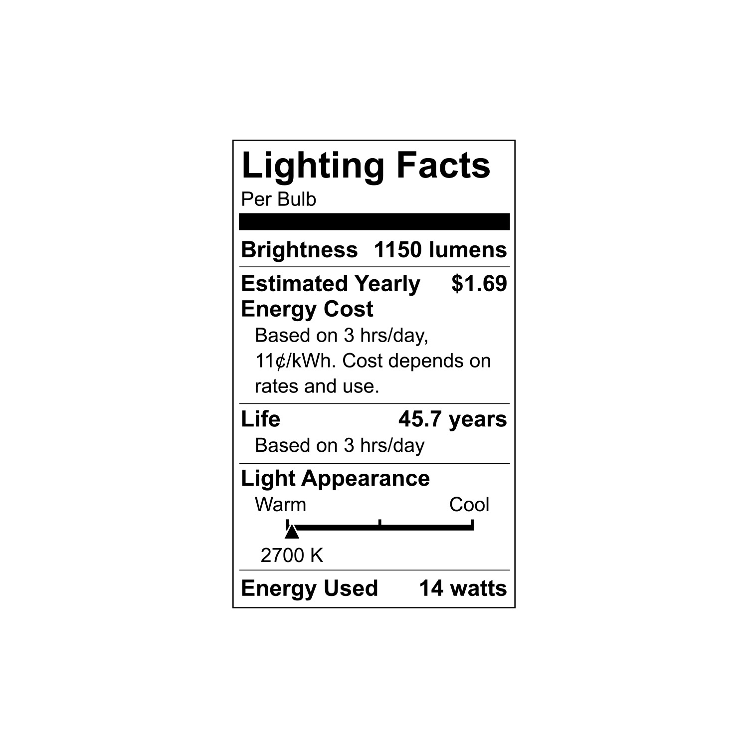 - 75 Watt replacement using only 14 Watts (1150 lumens)